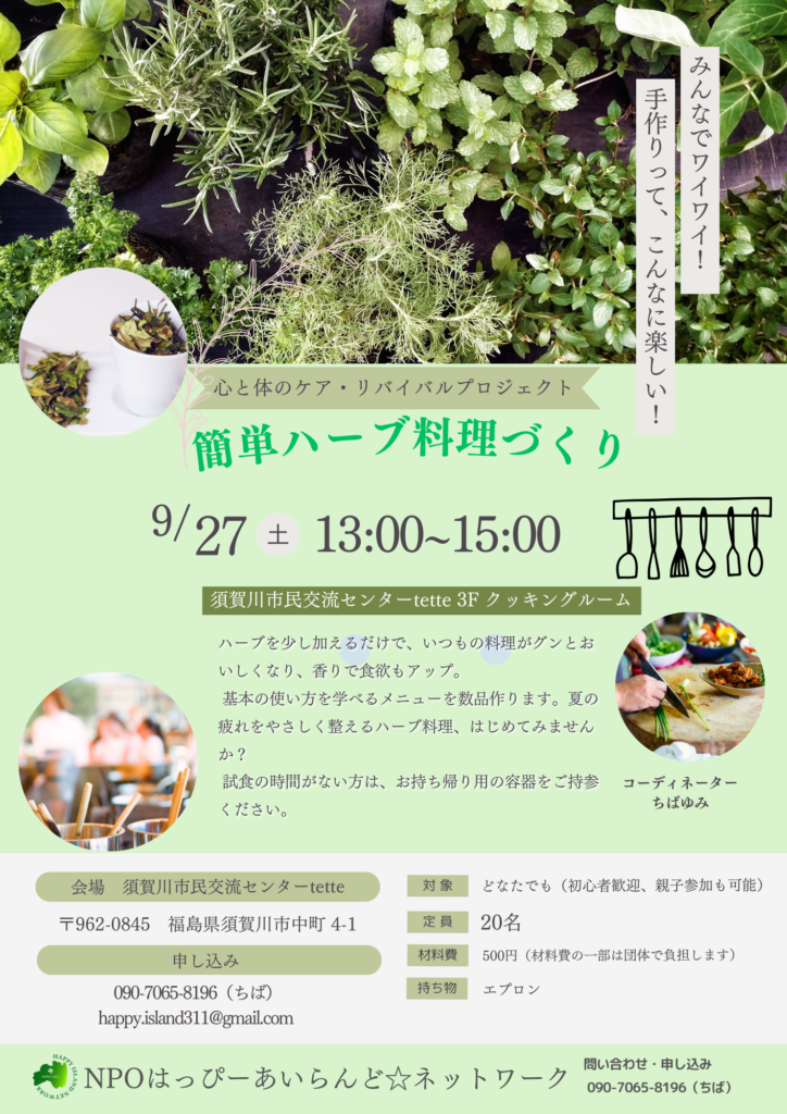 📍 会場:須賀川市民交流センター tette 3階 クッキングルーム
