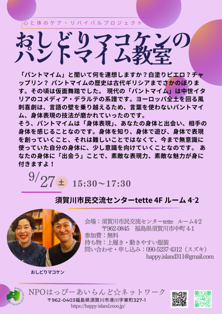 - お問い合わせ・申し込み:090-5237‐4312(スズキ) happy.island311@gmail.com