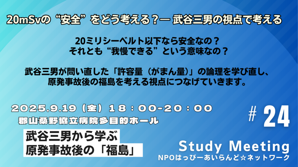 武谷三男から学ぶ原発事故後の「福島」#24 開催のお知らせ