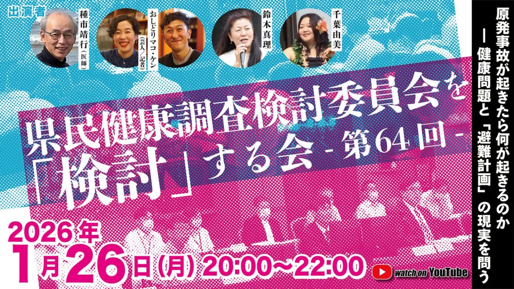 このYouTube配信では、これまで 福島で起きた原発事故が私たちの暮らしや健康に何をもたらしたのか、 特に県民健康調査検討委員会での発言に焦点を当てて発信してきました。